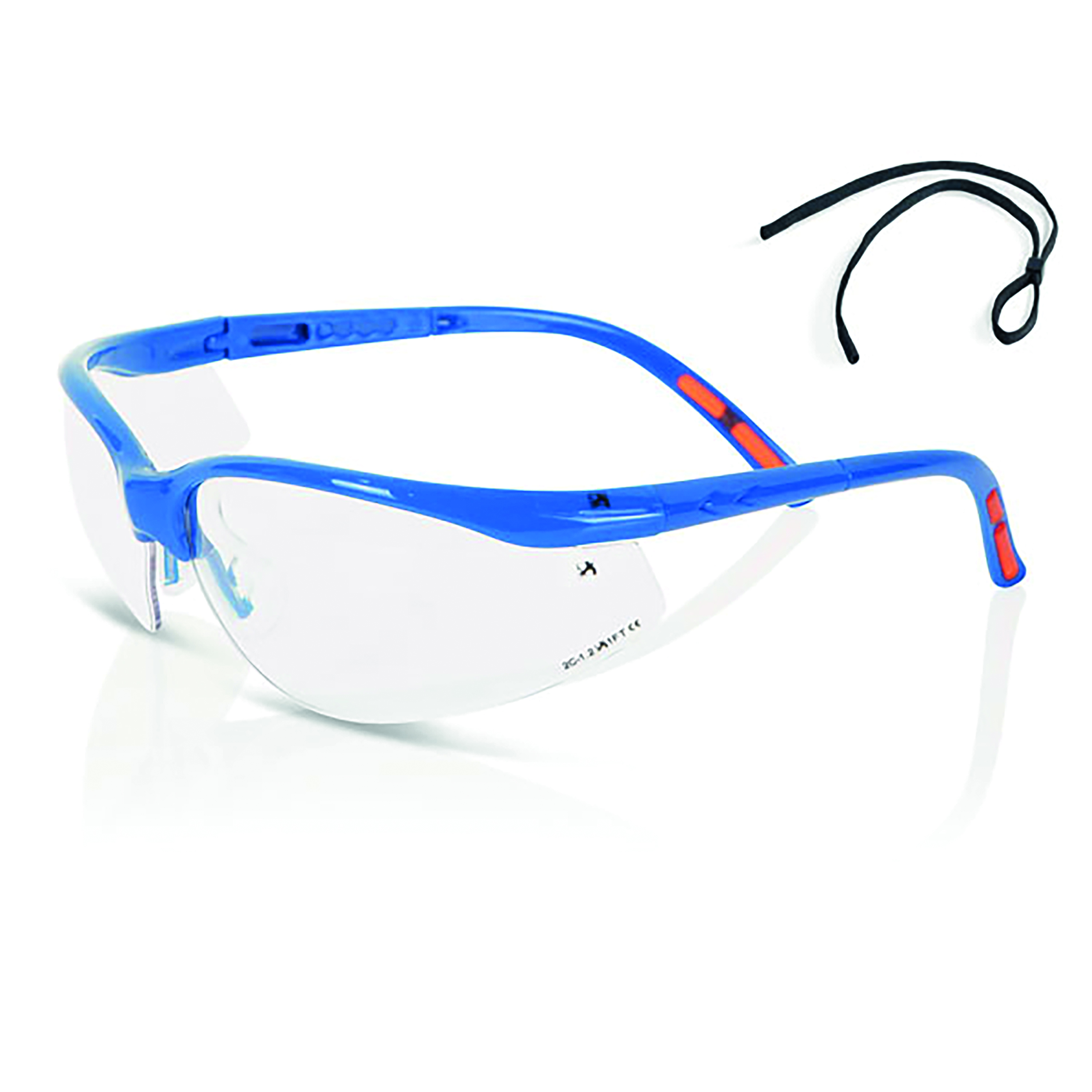 Lightweight, Adjustable arms, Polycarbonate lens (PC lens), Soft nose bridge, Conform to EN166:, Optical Class:1, F T - (Low impact energy at extreme temperatures), 5-3.1 - UV Filter, Complete with spec cord