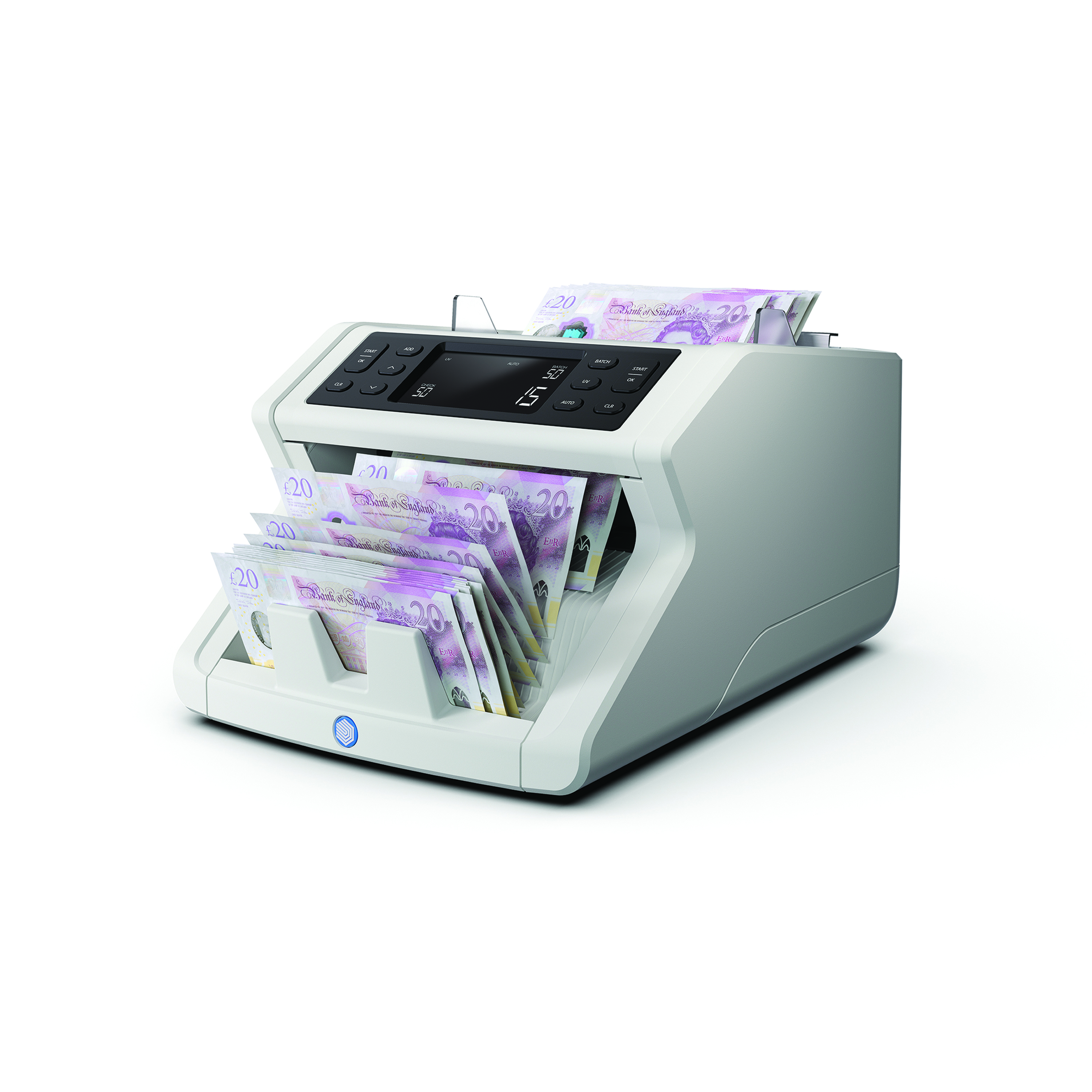 The Safescan 2210’s back-loading hopper can hold up to 300 banknotes and accurately count them, up to 1.000 notes per minute. Today’s currencies are printed with sophisticated security features that make it hard for counterfeiters to succeed. The 2210 automatically checks every banknote for two distinct security traits: UV markings and bill size. It will pause and beep to alert you when it encounters a suspicious bill; simply remove the offender and press start to resume counting.